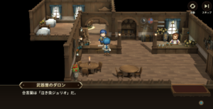 ラグーナの船着き場や町にいる人全員に話しかけると、武器屋で合言葉を聞くことができます。
